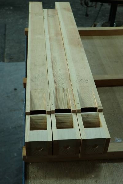 Die Holzpfeifen des Gedecktbass 8' wurden fertiggestellt und anschließend mit Tusche und Feder signiert.