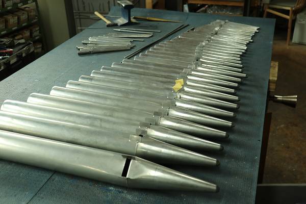 Die Prospektpfeifen aus dem Principal 2' sind gereinigt. Sie müssen noch poliert und intoniert werden.