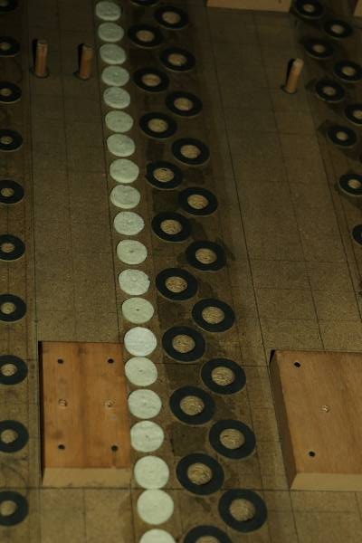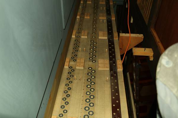 den Stimmvorrichtungen. Diese sind, aufgrund der Enge im Orgelwerk,
