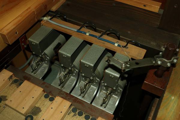 Die Arbeitsbälge für die Pedalkoppeln befinden sich "hinter Gitter". Die Demontage gestaltet sich hierbei etwas schwieriger.
