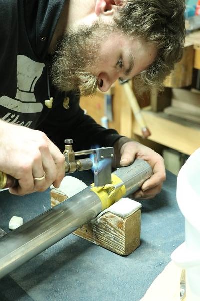 abgerollt und gekürzt. Dann muss die Pfeife begradigt werden. Der