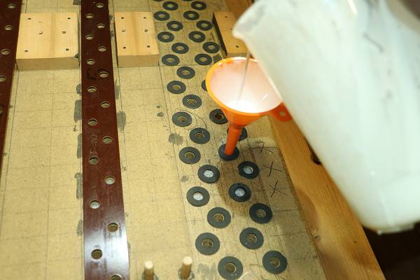 Waagebalkenleisten hergestellt und eingebaut. Nun werden die Tasten beim Spielen nicht mehr aus ihren Lagern gehebelt.