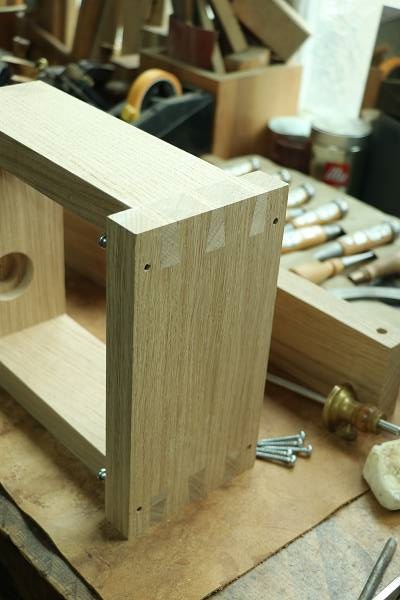 Späne: Der Zuschnitt für das neue Notenpult wird gemacht, damit das