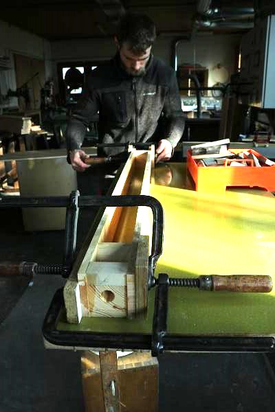 nochmal Werkstattarbeit angesagt. Leon Scharfe stellt die Windstöcke