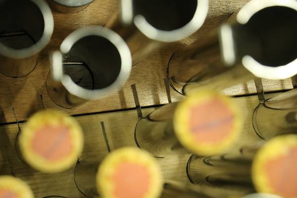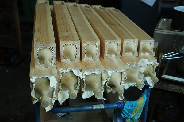Die Holzpfeifen des Gedecktbass 8' wurden fertiggestellt und anschließend mit Tusche und Feder signiert.