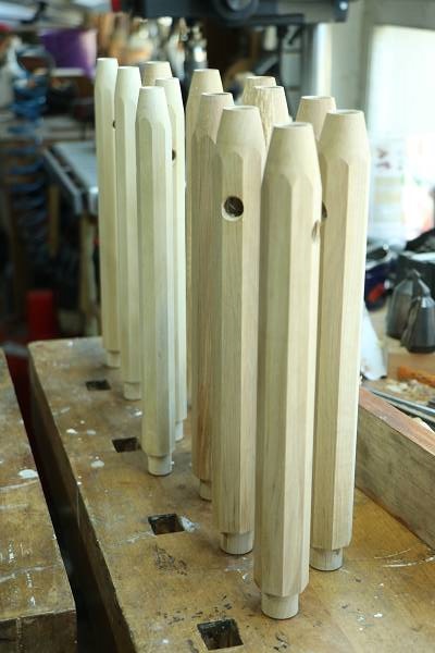 ... werden kurzerhand alle Spunde auf die Drechselmaschine gespannt und abgedrechselt.