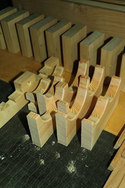 Für die neue Aufteilung auf der Windlade wurden komplizierte Überstöcke erfoderlich. Doch die Mühe lohnt sich, ...
