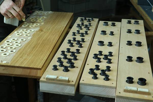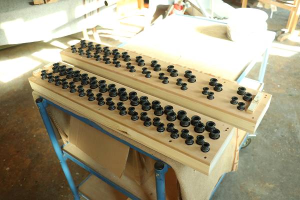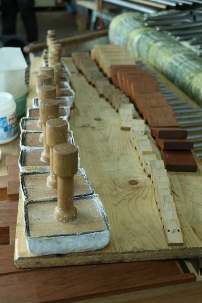 Waagebalkenleisten hergestellt und eingebaut. Nun werden die Tasten beim Spielen nicht mehr aus ihren Lagern gehebelt.