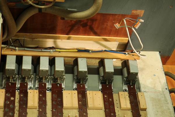 Die Arbeitsbälge für die Pedalkoppeln befinden sich "hinter Gitter". Die Demontage gestaltet sich hierbei etwas schwieriger.