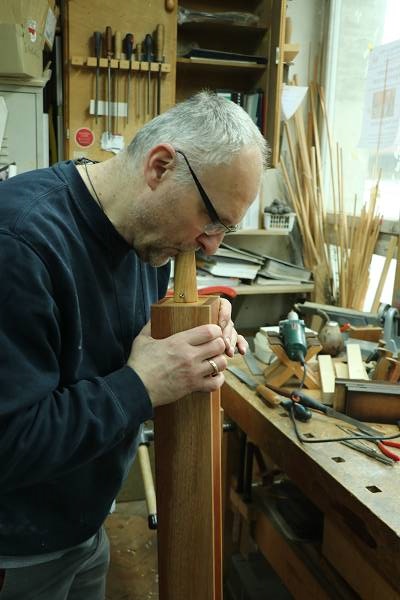 Späne: Der Zuschnitt für das neue Notenpult wird gemacht, damit das