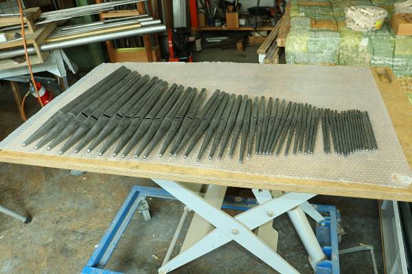 Sanierung. Alle Pfeifen werden zerlegt, die Zungenblätter, Kehlen und