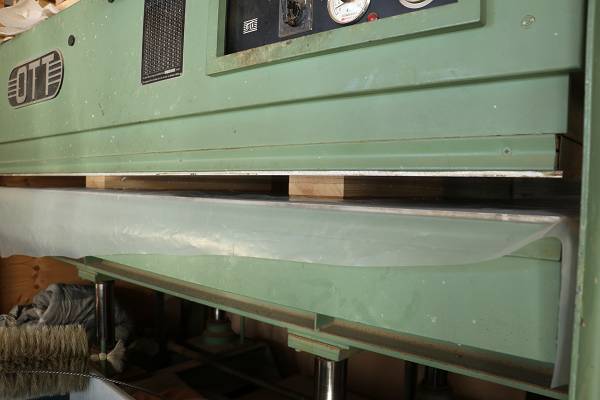 und Raster her. Hier liegen die Windstöcke bereits in der Verleimpresse.